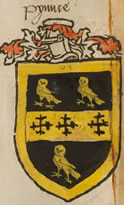 |  | Guardant | Close | Close | Or | Sable, on a fess between three owls Or three cross crosslets sable and a bordure Or. | 40v Pynnre | England | 1500 | 1500s Insignia Anglica BSB Cod.icon. 291 | Link |