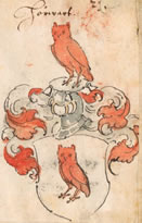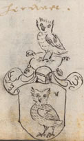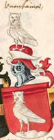 |  | Guardant | Close | Close | Argent | Gules, an owl argent atop a trimount issuant from base. | 325v | Germany | 1602 | 1602-1604 Wappenbuch der Konrad Grünenberg | Link |