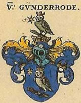 |  | Guardant | Close | Close | Argent | Azure, an owl crowned perched on a branch bendwisewise and in sinister canton a mullet argent. | 158 Von Günderrode | Germany | 1605 | 1605 Johann Siebmachers Wappenbuch | Link |