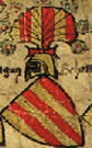 Argent, two morningstars, heads sable and hafted gules, in saltire. | - | Wurmlingen | Strip III back page 5 | ||