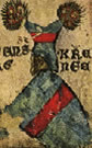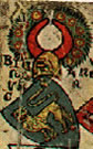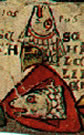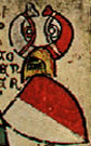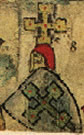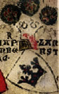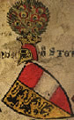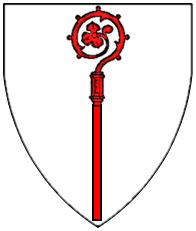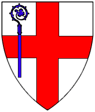 Argent, a cross gules surmounted in dexter by a crozier azure. | WI.. | Wien ? | Strip I back page 2. half | ||
