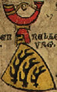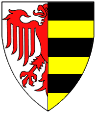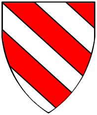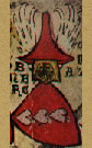 Gules, a bend and a chief indented argent. | REGENSPVRG | Regensburg, Bishropic | Strip I back page 2. half | ||