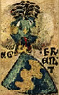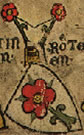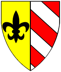 Or, a fleur-de-lys sable impaling bendy argent and gules. | - | not attributed | Strip III back page 2 | ||