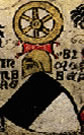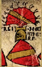 Gules, a cross between in chief two wheels argent. | MAeGENZ | Mainz, Archbishropic | Strip I back page 1. half | ||