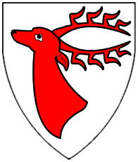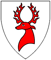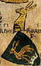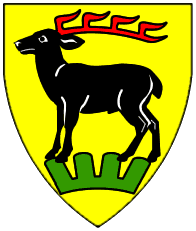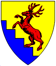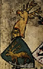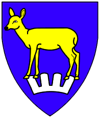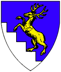 Azure, a stag or scaling the jagged side bendwise abased of a mountain issuant from dexter flank and base argent. | - | not attributed | Strip III back page 3 | Fox-Davies blazoned this as a "roe deer". | |