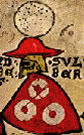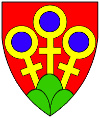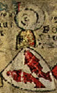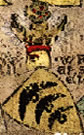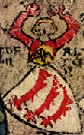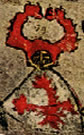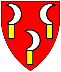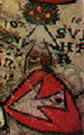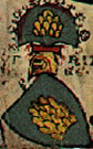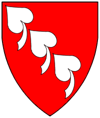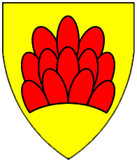 Gules, three pieces of fur two and one. | - | not attributed | Strip III back page 3 | (Blazon from Fox-Davies). | |