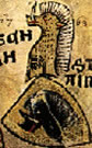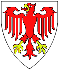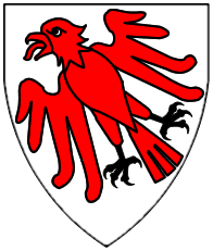 Argent, an eagle displayed fesswise gules surmounted in sinister by a crozier azure. | BRIHSEN | Brixen, Bishropic | Strip I back page 2. half | Popoff gives the blazon as: D'argent à l'aigle versée de gueules et chargée à sénestre d'une crosse d'azur. | |