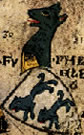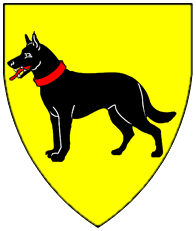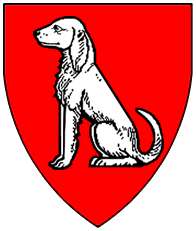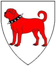 Argent, a mastiff gules gorged with a spiked dog collar sable. | - | not attributed | Strip III back page 6 | (Blazon from Fox-Davies). | |