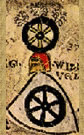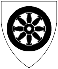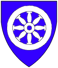 Azure, a mill-wheel with four spokes and eight troughs or. | - | Mülner | Strip III back page 6 | Rietstap blazons the arms of Miller as: D'azur, à une roue de moulin de quatre rayons et de huit augettes, le tout d'argent. | |