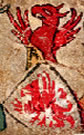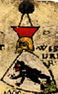 Argent, two bear's jambes gules in saltire. | - | Zwingenstein | Strip III back page 3 | Rietstap blazons the arms of Zwingenstein as: D'argent, à deux pattes d'ours de gueules, passées en sautoir. | |