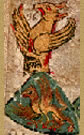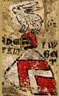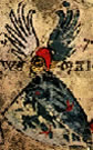 Argent, an owl gules. | - | Herwart von Hohenburg | Strip III back page 3 | Rietstap blazons the arms of Hervart as: D'argent, à un hibou de gueules. | |