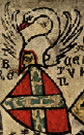 Gules, a swan argent, beaked and membered sable. | - | Dettighofen | Strip III back page 5 | Rietstap blazons the arms of Tettinghofer as: De gueules, à un cygne d'argent, becqué et membré de sable. | |