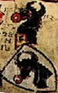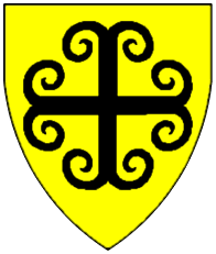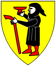 Or, a monk vested sable holding a staff and a cup gules. | Schotten | Scotland | Strip I front page 1. half | Popoff gives the blazon as: D'or au moine vêtu de sable, tenant un bâton et une coupe de gueules. | |