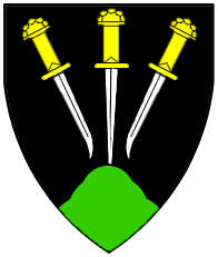 Sable, three poignards inverted pilewise proper and a mount vert. | Britania oder Bersia? [Monteini] | - | Strip I front page 2. half | ||