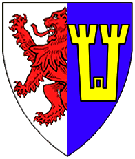 Argent, a lion rampant gules dimidiating azure, a castle with two towers or. | [Lipschga under dem Soldan] | - | Strip I front page 1. half | ||