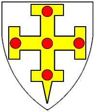 Argent, a cross potent fitched at the foot charged with five torteaux in cross. | - | Kingdom of Jerusalem | Strip I front page 2. half | Popoff gives the blazon as: D'argent à la croix potencée et fichée d'or chargée de cinq points de gueules. | |