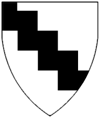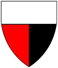 Per fess sable and argent, three lozenges in fess argent. | - | Ecker oder Dieperskircher | Strip III back page 3 | Rietstap blazons the arms of Ecker de Pöring as: Coupé: au 1, de sable, à trois losanges d'argent, rangées en fasce; au 2, d'argent plein. | |