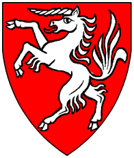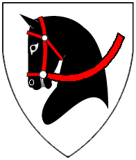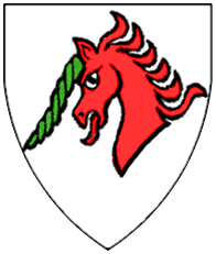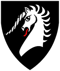 Sable, a unicorn's head couped argent. | - | Rizner | Strip III back page 4 | ||