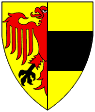 ? | Per bend or and gules, an eagle displayed bendwise sable and a wolf (?) passant bendwise argent. | - | Strit | Strip III back page 4 | |