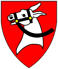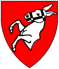Gules, a donkey's head couped argent bridled sable. | - | Meier von Jestetten | Strip III back page 4 | Rietstap blazons the arms of Jestetten as: De gueules, à une tête et col d'âne d'argent, bridée de sable. | |