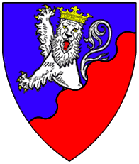 Azure, on a chief or a demi-lion rampant issuant from base gules. | ? | - | Strip I front page 1. half | Popoff gives the blazon as: D'azur au chef d'or chargé d'un lion issant de gueules (?). | |