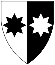 Per pale sable and argent, two mullets of eight points in fess counterchanged. | - | Brümsi | Strip III back page 5 | Rietstap blazons the arms of Brumse (Brömse, Brömsy, Brümsy) as: Parti de sable et d'argent, à deux étoiles de l'un à l'autre. | |