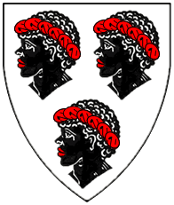 Argent, three Moor's heads sable torsed gules. | - | Gundelsdorf | Strip III back page 5 | Rietstap blazons the arms of Gundoltsdorf as: D'argent, à trois têtes de More, tortillées de gueules. | |