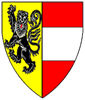 Or, a lion rampant gardant sable impaling gules, a fess argent. | SALZBVRG | Salzburg, Erbistum | Strip I back page 1. half | Rietstap blazons the arms of Salzburg as: Parti: au 1, coupé: a. d'azur au lion naissant et contourné d'or, mouvant du coupé; b. coupé-émanché d'or sur gueules, à la fasce d'argent, brochant sur le coupé; au 2, d'argent, à deux bandes de gueules. | |