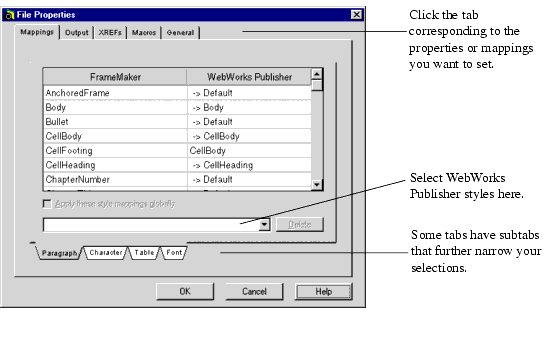See Chapter 7, "Mapping FrameMaker Styles to WebWorks Publisher Styles,"Getting Started for details on using this dialog box.