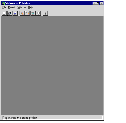When you first open the WebWorks Publisher Standard Edition application, the application window opens:
