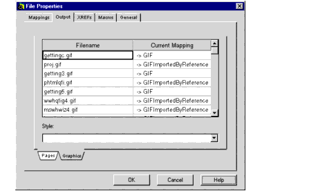 Graphics are converted using the WebWorks Rasterizer printer driver, which you install along with WebWorks Publisher Standard Edition. Publisher prints each graphic to a PostScript file and then converts from PostScript to the final output format. You will probably notice the FrameMaker print status window flashing on the screen as your project is generated.