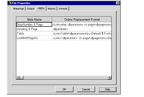 | Note: | Often, cross-reference definitions for headings include curly quotation marks (") and ("). If you don't want your output to contain quotation marks, you can edit them out in the XREFs tab. |