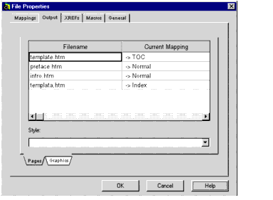 By default, a multifile project is automapped so that the first file uses TOC, the last file uses Index, and all the other files use Normal. Here's how the files are automapped in Publisher:
