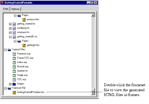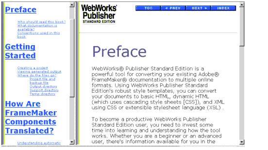 It is easy to create a frameset so that your table of contents file appears in an adjacent navigation frame alongside the rest of your files. Instead of using the TOC page style, you change the mapping of your TOC file, and Publisher does the rest.