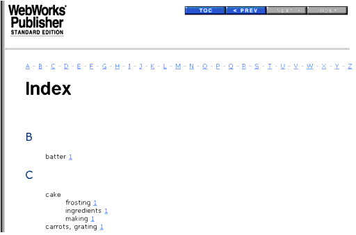 The last file in the project is generated using the Index.asp file. As with the Normal.asp file, this file contains two navigation bars (top and bottom), a corporate logo, and company contact information. It also creates a lettered bar that allows users to quickly jump to the correct letter of the index.
