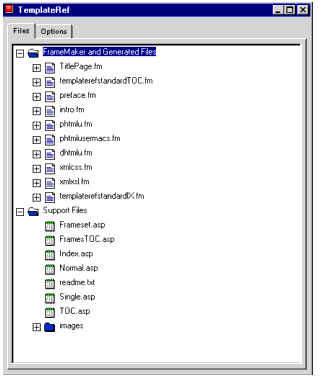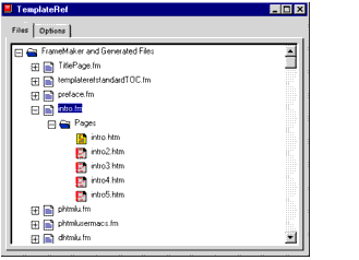 When creating a project, each FrameMaker document produces a single output file. The output files are shown in the Pages folder underneath the FrameMaker files in your project.