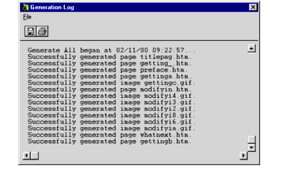 Whenever you generate, Publisher creates a log file. This log specifies which page and graphic files were created or updated and any errors.